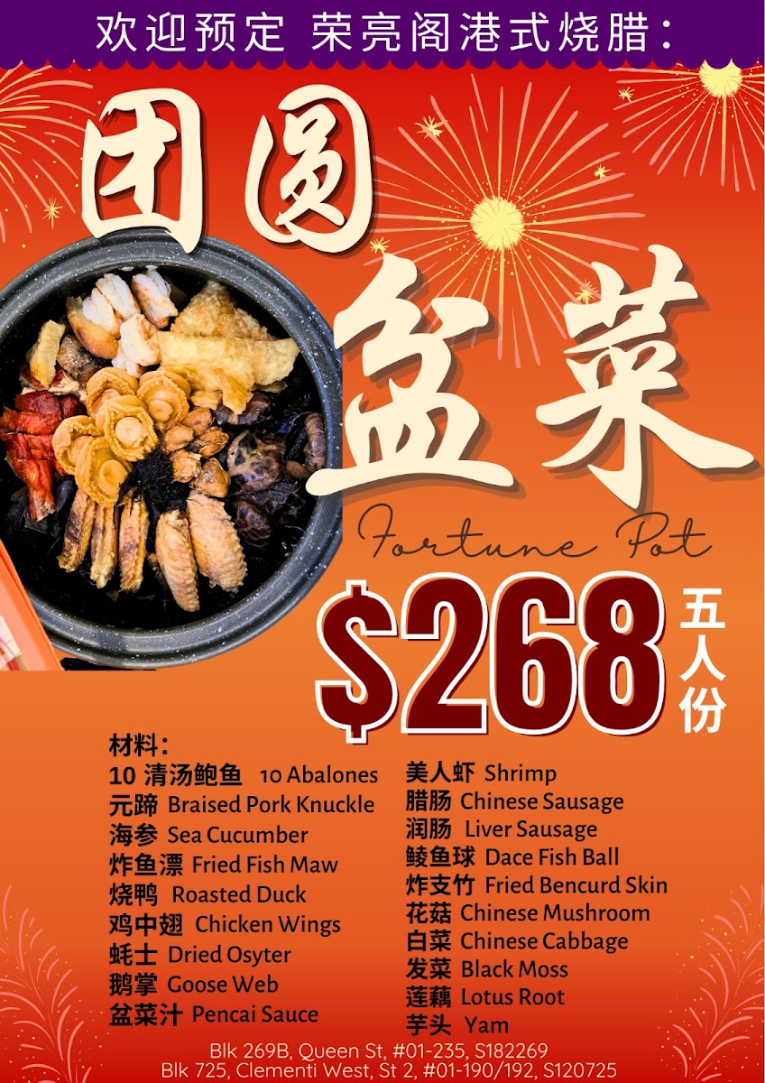 Introducing the menu at Rong Liang Restaurant Pte Ltd 榮亮閣, a cherished gem tucked away in Clementi West, where culinary traditions shine in every dish. This restaurant specializes in classic Cantonese-style roasted meats, delivering unparalleled flavors and textures. Highlights include the exquisitely juicy Char Siew, drizzled with a rich, caramelized sauce that enhances its succulent profile, and the irresistibly crispy Roast Pork, celebrated for its perfect balance of tenderness and crunch.